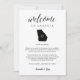 Share a welcome message for your Georgia wedding guests as well as an itinerary or schedule of the weekend's events. Front features your welcome message with a silhouette map of the state of Georgia with a heart inside. Personalize the reverse side with your wedding day or wedding weekend itinerary. Perfect for including in hotel welcome bags or delivering to your guests' rooms.