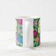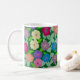 Geranium Flowers Coffee Mug. Hand painted and drawn geranium flowers on a coffee mug with a deep green background. Bright and colorful design and part of a collection.