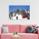 Geranium flowers and trulli houses in Alberobello Canvas Print