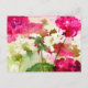 An original painting of abstract watercolor geraniums printed on a postcard, artist Kristina Anderson