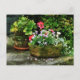 Geraniums and Lavender Flowers on Stone Steps Postcard