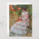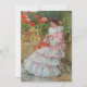 Geraniums (c. 1888-1889) | Original artwork by American Impressionist painter Childe Hassam (1859-1935). The piece depicts a woman wearing a pink and white dress, seated in a garden, surrounded by vibrant pink and red flowers.