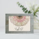 A wedding RSVP featuring an image of barnwood framing the front with an image of a pink and off white gerbera daisy peeking from top of rectangle at center. Personalize the text on front and back.