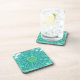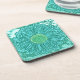 Gerbera Daisy Block Print - shades of aqua Drink Coaster