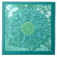 Tile in a block print of a Gerbera daisy, based on a photograph, digitally transformed and hand tinted - shades of soft aqua and turquoise