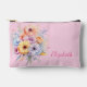 Gerbera flowers add name pink accessory pouch