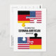 Patriotic GERMAN AMERICAN flag design, showing the flag of GERMANY and the Stars and Stripes flag of the UNITED STATES OF AMERICA, connected in the shapes of jigsaw pieces. The text reads CELEBRATING GERMAN-AMERICAN HERITAGE on the front, and there is a customizable greeting on the reverse, where you can create your own message and add your name or business. Specially designed to celebrate German-American Day and German-American Heritage Month in October. Matching party supplies, clothing and gifts are available, so you can celebrate in style.