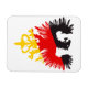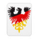 The coat of arms of Germany displays a black eagle (the Bundesadler "Federal Eagle", formerly Reichsadler "Imperial Eagle") on a yellow shield (Or, an eagle displayed sable). It is a re-introduction of the coat of arms of the Weimar Republic (in use 1919–1935) adopted by the Federal Republic of Germany in 1950.[1] The current official design is due to Tobias Schwab (1887–1967) and was introduced in 1928.