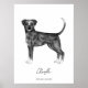 Destei's original black and white color illustration of a cute German Boxer breed dog drawn in digital ink wash style. There are also two personalizable text areas under the image.