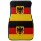 Design with variant flag of Federal republic of Germany with horizontal stripes of black, red and yellow; with coat of arms with an eagle