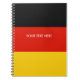 German flag of Germany spiral notebook journal. Custom office and school supplies for men women and children. Great for accounting, keeping budget, homework, office, business, company, shop, oktoberfest party, planning, wedding, teaching etc. Add your own text optionally. Writing paper accessories. Transferable design to other products.