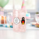Personalized beer or can glass features Ms. Penguin wearing her flag of Germany. Change the words in Ms. Penguin's talk bubble with your special message. Toast the birthday person or celebrate Oktoberfest. Don't forget Penguin Awareness Day. Fun to take to a friend or family reunion and club or travel group event. Terrific housewarming gift for the home bar.