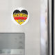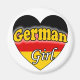 Leuke magneet met een hart afgebeeld met de Duitse vlag erop. Op de tekst staat: Duits meisje De achtergrond is in de kleur wit. Leuk om te geven als cadeau of voor jezelf om te laten zien dat je trots bent om een Duitser te zijn. kleuren: rood, geel en zwart.