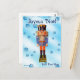 A traditional German wood nutcracker depicting a military officer with a blue and orange uniform. The nutcracker is superimposed on a blue background image with snowflakes. French text reading "Joyeux Noël" (Merry Christmas) also appears. Add your own additional text.