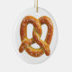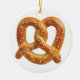 A traditional, mouth-watering soft German pretzel is featured on this holiday ornament.