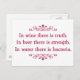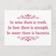 "In wine there is truth, in beer there is strength, in water there is bacteria." - German Proverb