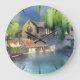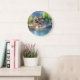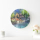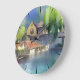 German River Village Watercolor Large Clock