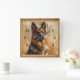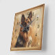 German shepherd wall clock. Gold, brown, tan background with printed on frame.