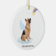 Celebrate your best friend with a custom German Shepherd angel memorial ornament. This German Shepherd christmas memorial ornament features a watercolor German Shepherd dog with angel wings and a rainbow and shooting gold star. Personalize with name front, dates back . This German Shepherd memorial ornament is a perfect dog remembrance keepsake or pet christmas memorial keepsake. COPYRIGHT © 2022 Judy Burrows, Black Dog Art - All Rights Reserved. German Shepherd Angel Personalize Pet Dog Memorial Ceramic Ornament