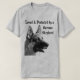 A majestic image of a German Shepherd, with a black muzzle, and words of your choice. Suggested text is, loved and protected by a German Shepherd.