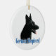 Lightweight, smooth, pure white ornament with nice sheen. Perfect size to be seen from across the room ... and to attract closer inspection! Price was great for ordering enough for the whole family! Clear, bold black design just as requested. Matches the order exactly. Just so nice!