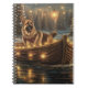 Set sail into the magic of the holiday season with this beautifully detailed illustration, showcasing a proud dog sitting in a festively decorated boat, gliding across a serene Christmas lake. The twinkling lights from nearby pine trees reflect off the water, casting a warm, festive glow that enhances the cozy ambiance. Ornaments dangle from the boat's sides, while glowing lanterns light the way, creating a scene that captures the true essence of Christmas warmth and joy. This nostalgic artwork brings a touch of holiday magic to any space, perfect for those who cherish the spirit of the season.
