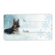 A young German shepherd in the snow Christmas gift label......Lovely blue colouring with stylized snow flakes ideal for you Christmas gifts and presents with