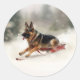 German Shepherd Christmas snow winter Classic Round Sticker