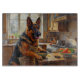 Bring strength and intelligence into your kitchen with this German Shepherd design featuring a loyal pup cooking in a cozy setting. With its confident posture, expressive eyes, and powerful build, this artwork captures the breed’s iconic and dependable personality.