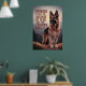 A German Shepherd stands proudly on a hilltop, gazing out at a sunset, with the inspiring quote Courage is not the absence of fear, but the triumph over it displayed prominently.