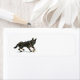 Caricature of a brindle German Shepherd, inspired by a dog named "Dax" who loves to play ball. Ink & pencil drawing by Andie.