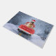 German Shepherd Dog in Snow sitting in Christmas Doormat
