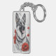 Capture the essence of strength and loyalty with this keychain, featuring a regal German Shepherd dog among red poppies.