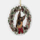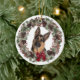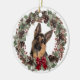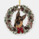 German Shepherd Dog Red Bow Pinecone Wreath Ceramic Ornament