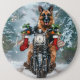 German Shepherd Dog Riding Motorcycle Christmas Button