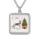 German Shepherd Funny Christmas Dog with Tree Silver Plated Necklace