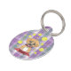 A fun id tag for your dog to wear . On the front , it has the illustration of a cartoon German shepherd - Golden retriever mix puppy , on a purple plaid background . Add your dog's name using the template . On the back , is a place for your text and phone number for people to contact you if your pup should get lost .