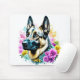 German Shepherd in Pink and Yellow Flowers Mouse Pad