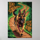 A German Shepherd runs down a winding forest path. The dogs powerful legs are in full stride, and its expression is determined. The text Lead with Strength, Follow with Heart is visible in the background.