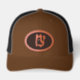 Custom Leather Patch Hat, Sytle: Adult Retro Trucker Cap, Color: Heather / Black, Shape: Circle