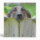 Cute and sweet looking German Shepherd dog peers over a backyard fence.