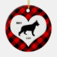 German Shepherd name + date Red Plaid Ceramic Ornament