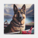 German Shepherd on a Paddle: A Scenic Adventure Magnet
