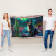 A quality printed throw has its advantages. This is a much finer weave throw than its loopier cousins, and though lighter, it is worth the investment for custom room accessorizing. The back is much prettier than the typical brown, and the fringe on the long sides very vivid, the selvage nicely done. Before photographing, I washed the throw in cold water, delicate, with a thicker woven throw the same size. On tumble dry low, this throw was dry in half the time as the other. This is a very practical quality if you use throws for furniture covers or to wrap up in frequently. The sleekness of the fabric makes it a great layer for accenting or protecting without the feeling of sitting on too much stuff. Perfect for napping or when you feel a light chill coming on. The color printing is beautiful and on this fabric, matched the design and color of my Photoshop image. This is an advantage for blending room fabrics and colors. The fringe on the short sides prints the colors from the design image and therefore varies from the side fringe. I streaked a white fractal line through the plaid pattern to give the illusion of weaving. This printed as crisp as an illusory thread, and put some white in the short side fringe, showing another advantage of print vs loomed- for artistic purposes, line lines, detail, and color integrity can be planned and preserved. My loomed throws have color limitations and more of a needlepoint texture. Print throws reproduce an exact image. The throw felt a little stiff straight out of the package, but this went away in the first delicate wash. Of course I searched the wash water for ink or bleeding and there was none.
