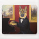 This design features German Shepherd elegantly dressed in a black frock coat, white shirt, near the piano, against a red wall with paintings in gold frames.