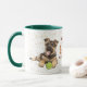 "Shepherd puppy kisses fix everything" declares this mug for the German Shepherd Dog owner. The image on each side is a portrait of an adorable German Shepherd puppy. The images and text are placed on a white background that is sprinkled with gold confetti.