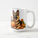 German Shepherd Resting With Pumpkins and Flowers Coffee Mug