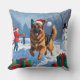 German Shepherd Running in Snow with Christmas Hat Throw Pillow