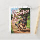 A German Shepherd dog runs down a dirt path, kicking up dust with its powerful paws. Above the dog are the words Lead With Strength, Follow With Heart.
