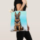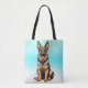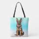 The ears are magnificent, the smile is charming, the dog is perfect . . . of course it is, it's a German Shepherd! With a gradient blue background, this is the perfect tote bag for anyone who loves dogs, and German Shepherds in particular.